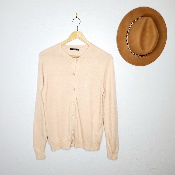 NWT ZARA Woman Ecru JEWEL BUTTON KNIT CARDIGAN V-Neck Long ... from i.ebayimg.com Zara black knit cardigan with faux pearl button, round neckline, long sleeves, faux pearl buttons that fasten in the front and on the cuffs. Zara knit shimmer fringe pocket open cardigan. Contrasting lapel collar and long sleeves.